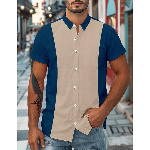 More information about Men's Shirt Summer Shirt Button Up Shirt Casual Shirt Bowling Shirt Black Dark Navy Blue Short Sleeve Color Block Collar Daily Vacation Clothing Apparel Cotton Blend Fashion Casual Comfortable