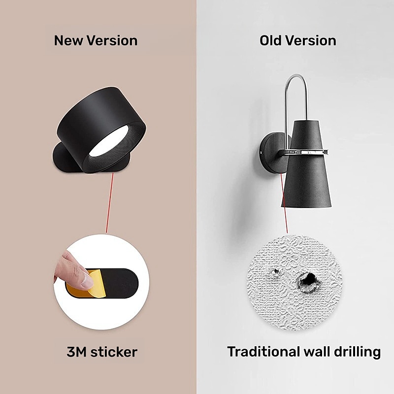 LED Cabinet Lights with Remote, Rechargeable Wall Mounted Lamp 3000mAh, 3 Color Temperatures Dimmable Magnetic 360° Rotation Cordless Light for Bedroom Bedside Corridor 4