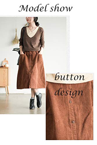 More information about Minibee Women's Corduroy Midi Skirt Front Split Buttons Decoration A-Line Dress