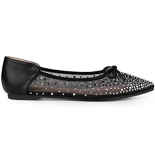 HOT ! Allegra K Women's Pointed Toe Bow Rhinestone Mesh Ballerina Flats