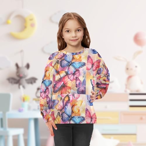 JUNZAN Vintage Colorful Butterflies Big Boys Sweatshirts Hoodies Fleece Fall Tops Shirts Athletic 4T 3