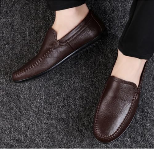 Mens Loafers Shoe Round Toe Lightweight Flexible Flat Heel Rubber Sole Genuine Leather Stitching Details 7