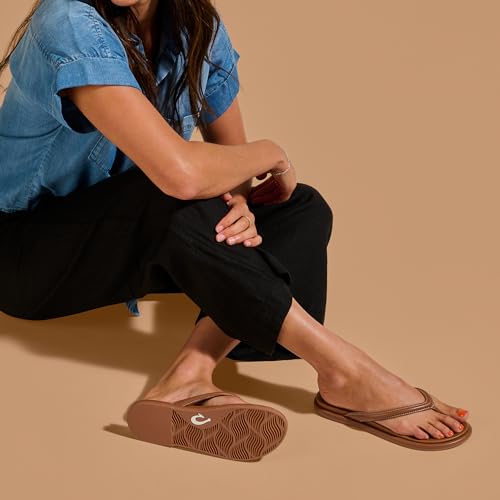 OLUKAI Tiare Women's Beach Sandals, Premium Leather & Stylish Design, All-Day Comfort & Support, Fox/Fox, 9 2