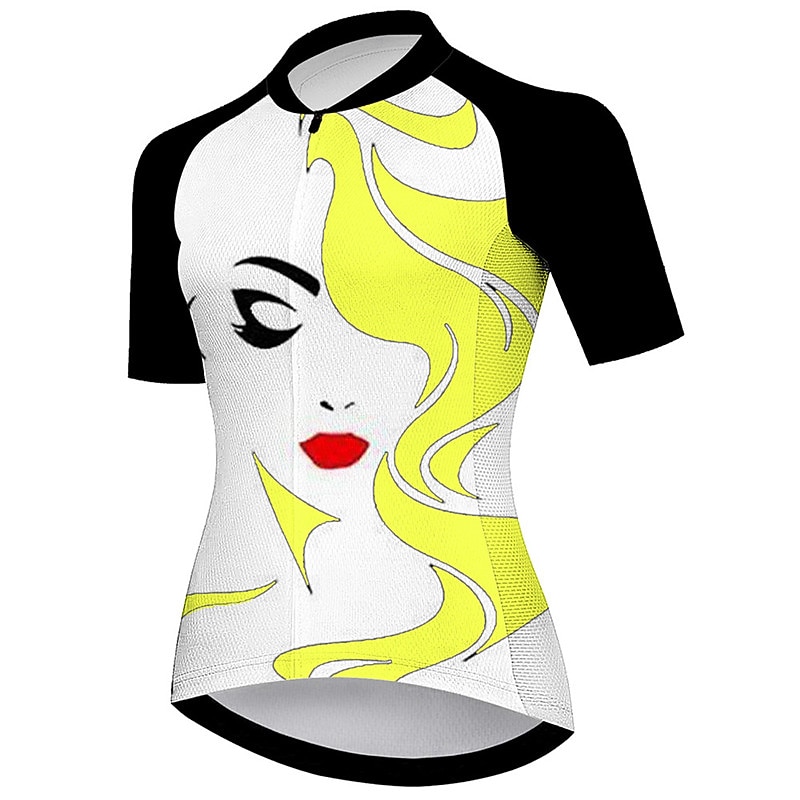 Women's Cycling Jersey Graphic Short Sleeve Bike Jersey Top with 3 Rear Pockets Mountain Bike MTB Road Bike Cycling Quick Dry Reflective Strips Back Pocket Moisture Wicking Sports Black Yellow Pink 16