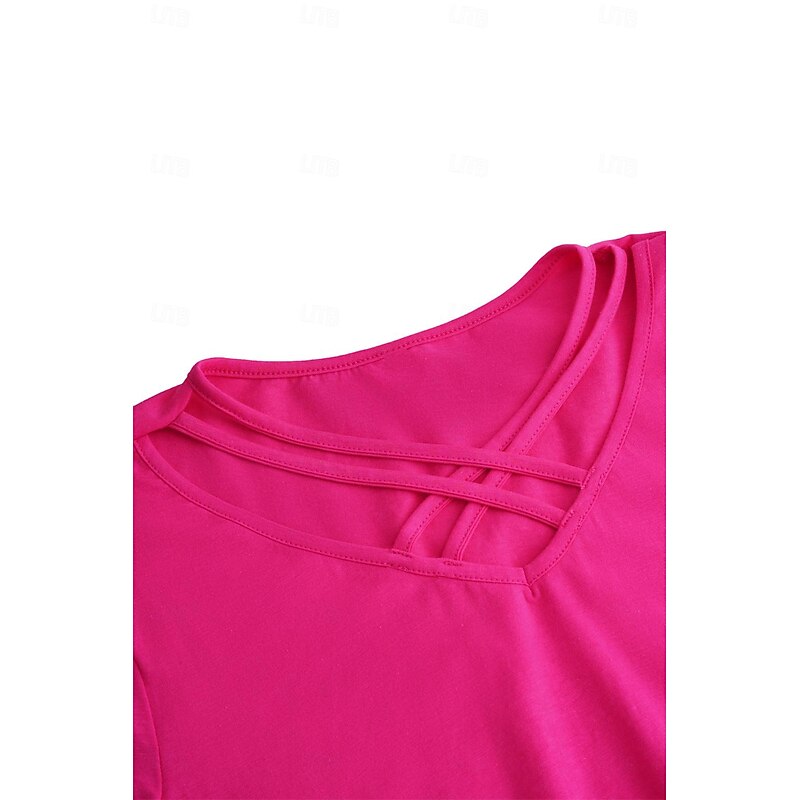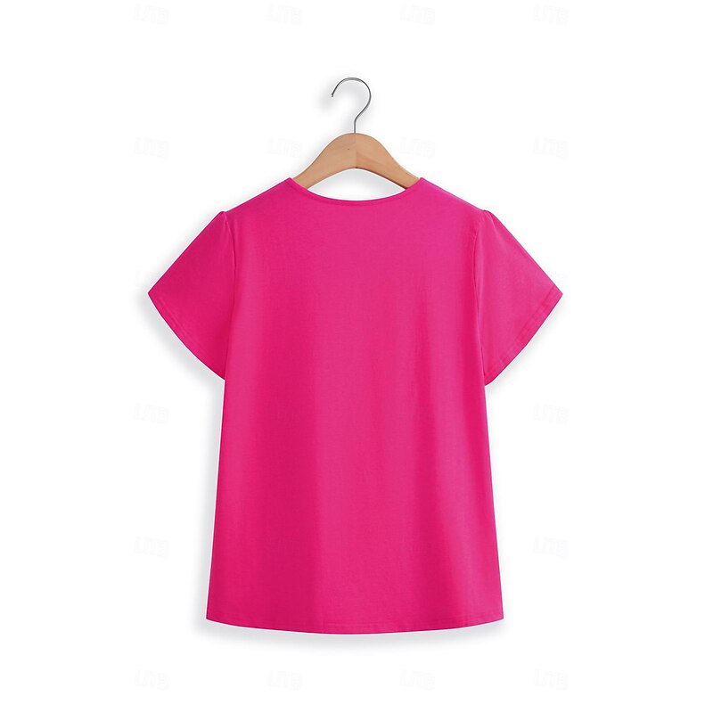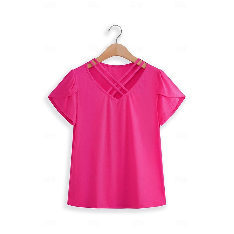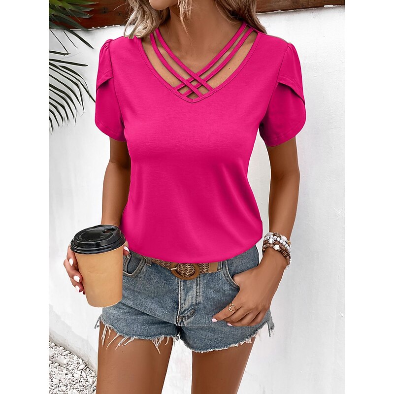More information about Women's Tunic Dressy Tops Plain Fashion Short Sleeve V Neck Regular Tops Vacation Daily Lace Pink Fuchsia Khaki Summer