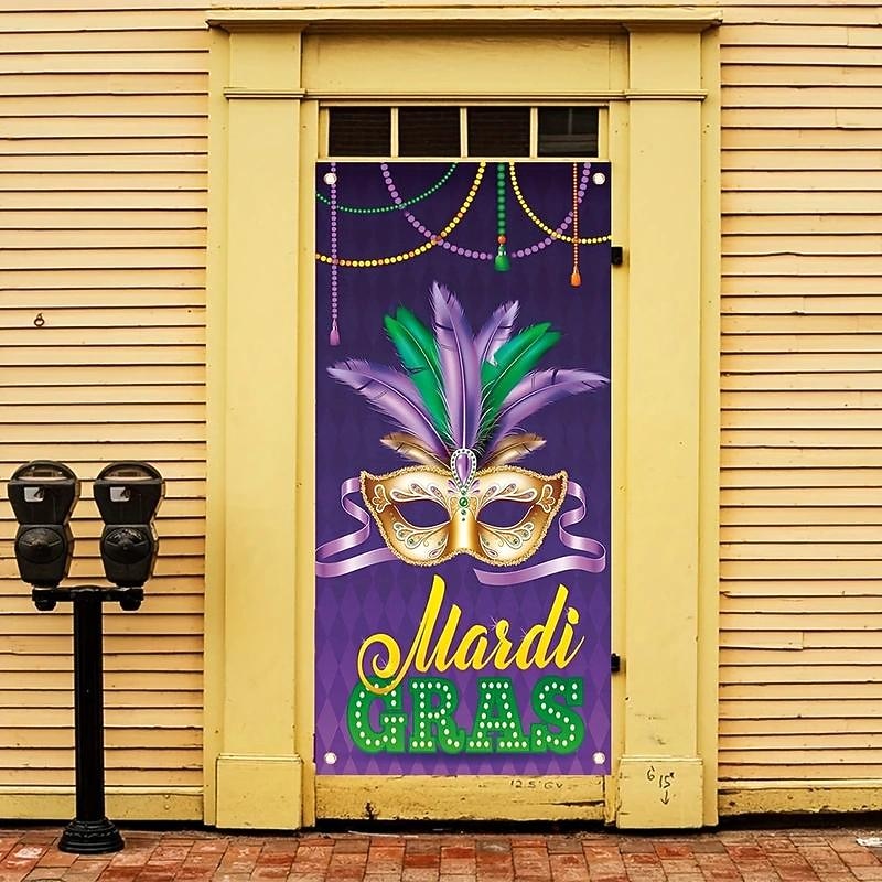 Mardi Gras Carnival Door Covers Door Tapestry Door Curtain Decoration Backdrop Door Banner for Front Door Farmhouse Holiday Party Decor Supplies 8