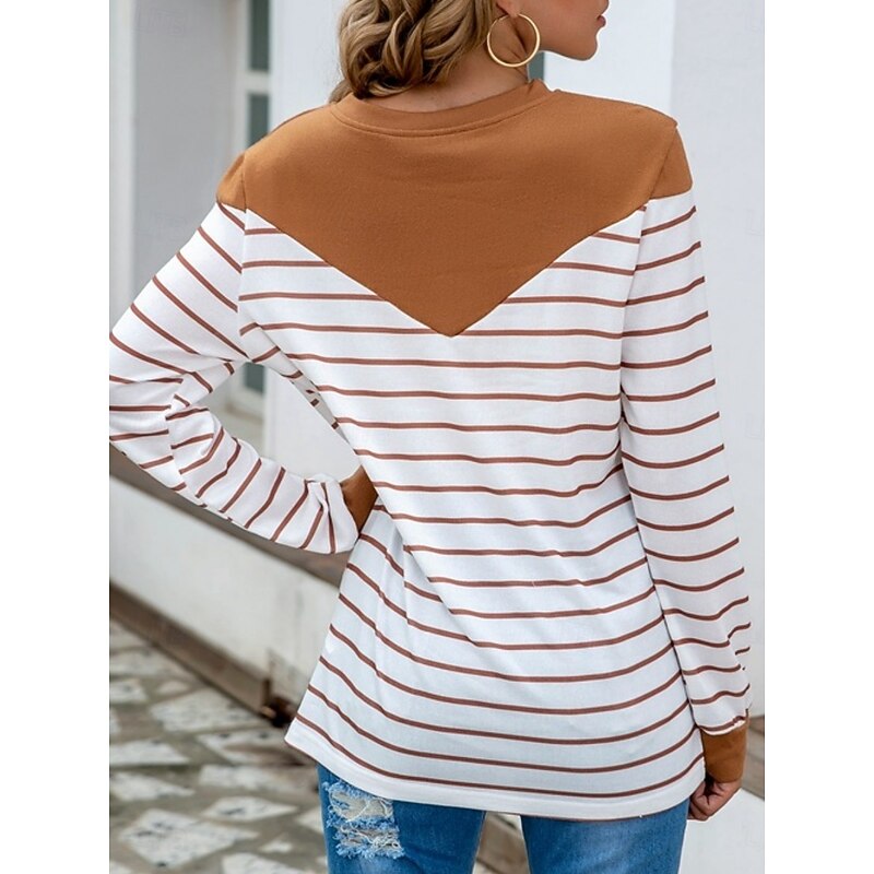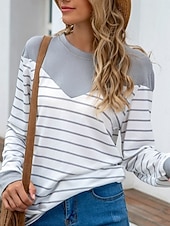 Women's Sweater Casual Soft Striped Ribbed Crew Neck Knitted Long Sleeve Regular Tops Knit Outdoor Daily Weekend Blue Khaki Fall Winter 13