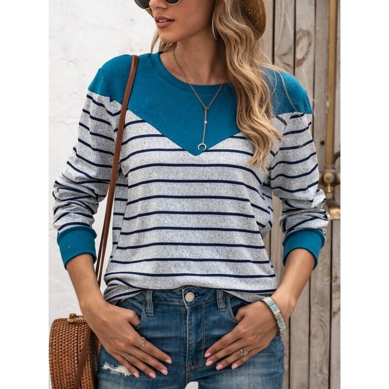 HOT ! Women's Sweater Casual Soft Striped Ribbed Crew Neck Knitted Long Sleeve Regular Tops Knit Outdoor Daily Weekend Blue Khaki Fall Winter