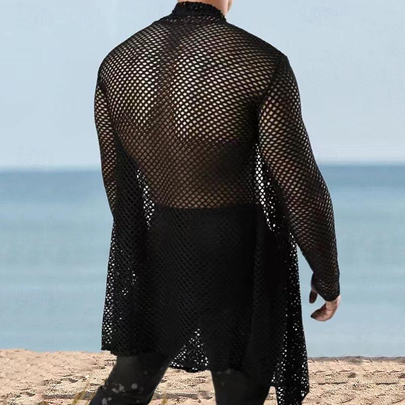 More information about Men's Shirt Summer Shirt Mesh Shirt Sheer Shirt Sheer Blouse Black Long Sleeve Plain Collar Hawaiian Holiday Mesh Clothing Apparel Fashion Casual Comfortable