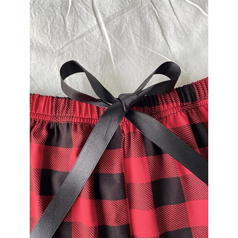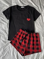 More information about Women's Pajamas Sets Heart Grid / Plaid Fashion Comfort Home Daily Bed Breathable Crew Neck Short Sleeve T shirt Tee Shorts Elastic Waist Summer Spring Home Outfits