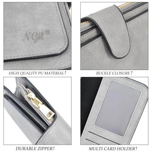 HOT ! NGIL Women Wallet Faux Leather RFID Trifold, High Capacity Women Wallet, Multi Credit Card Holder Organizer Ladies Clutch, Faux Leather Vintage Wallet (Grey)