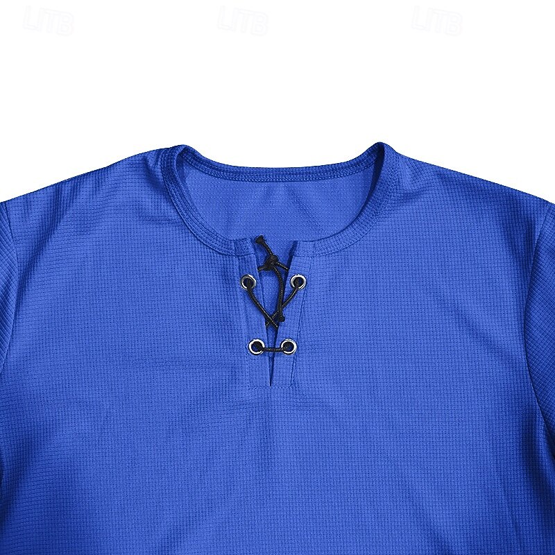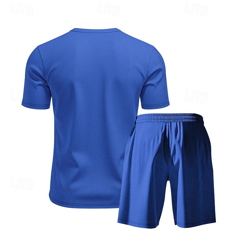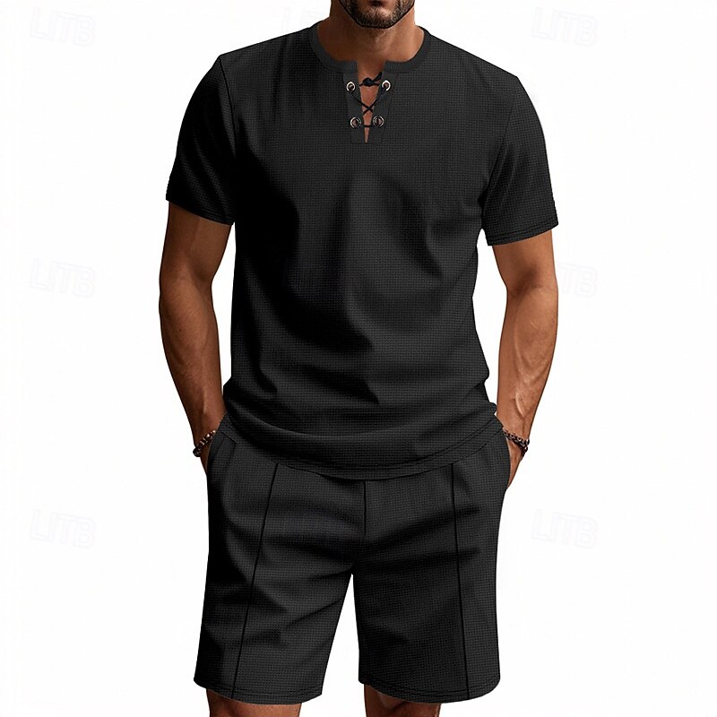 More information about Men's Waffle Shirt T-shirt Suits 2 Pieces Outfits Tee & Shorts Short Sleeve V Neck Summer Plain Fashion Casual Lace up 2 Piece Vacation Daily Wear Going out Black White Royal Blue Top Tee for Men