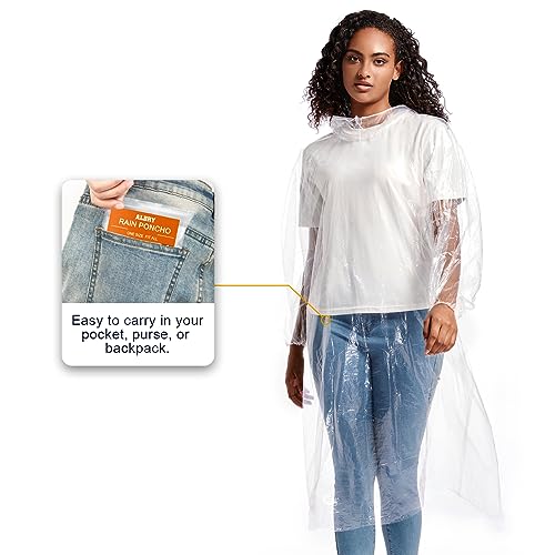 HOT ! ALBRY Disposable Rain Ponchos for Adults with Drawstring Hood - Emergency Rain Ponchos Family Pack for Women and Men,Clear