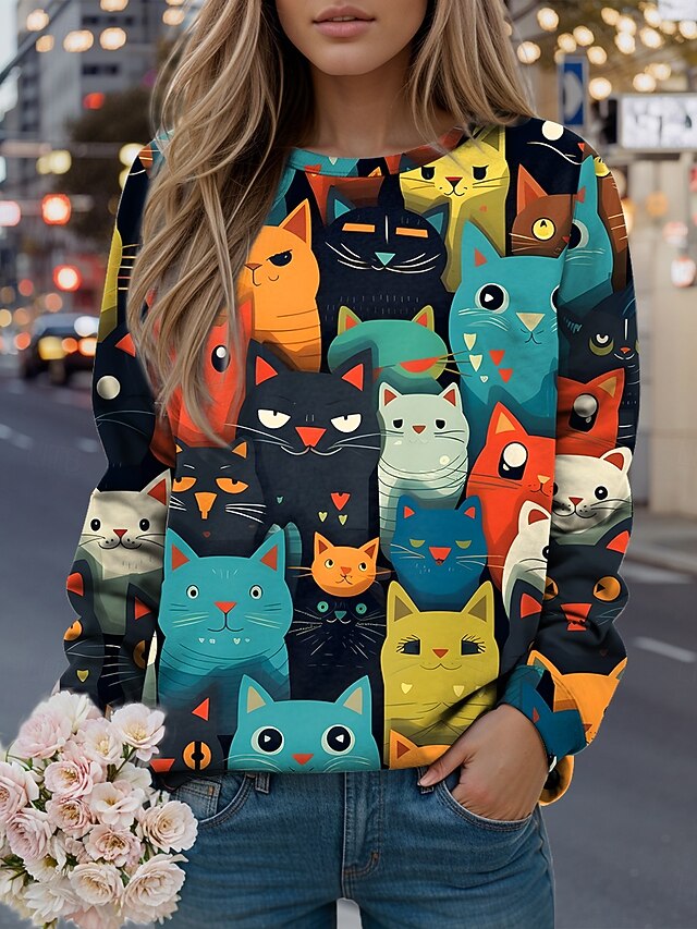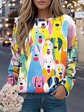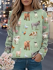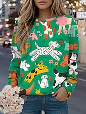 More information about Women's Sweatshirts Graphic Animal Casual Long Sleeve Crew Neck Regular Tops Street Casual Holiday Print Black Yellow Light Green Green Spring Fall Winter