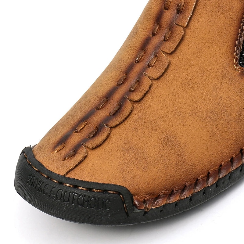 : These retro penny loafers embody timeless craftsmanship with a modern twist. They include a convenient side zipper that blends seamlessly with the robust decorative stitching, adding a touch of artisanal charm. Their low boot shaft style as ankle boots makes them versatile and suitable for various outfits.