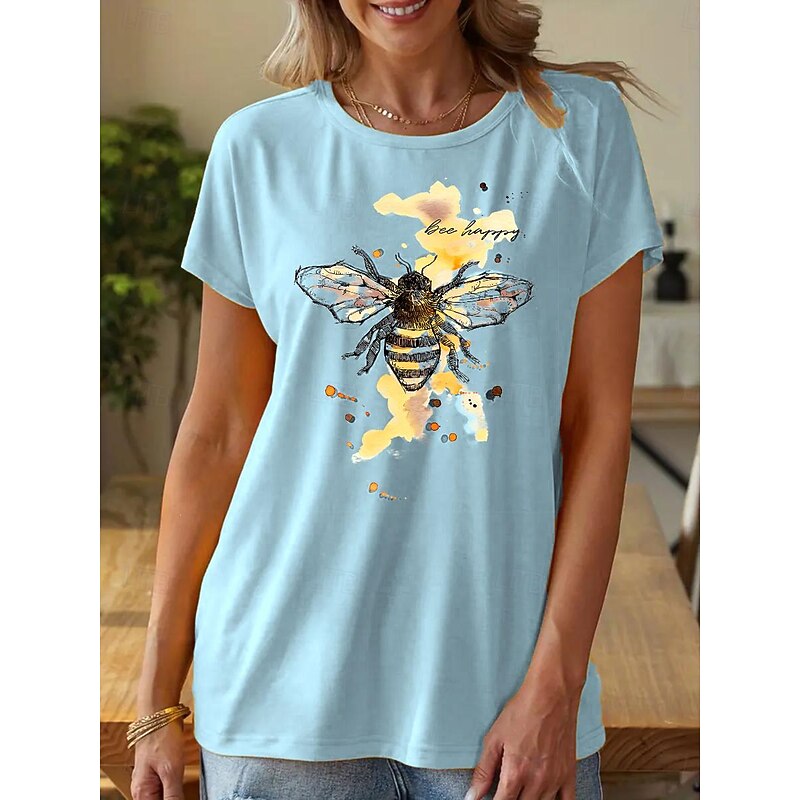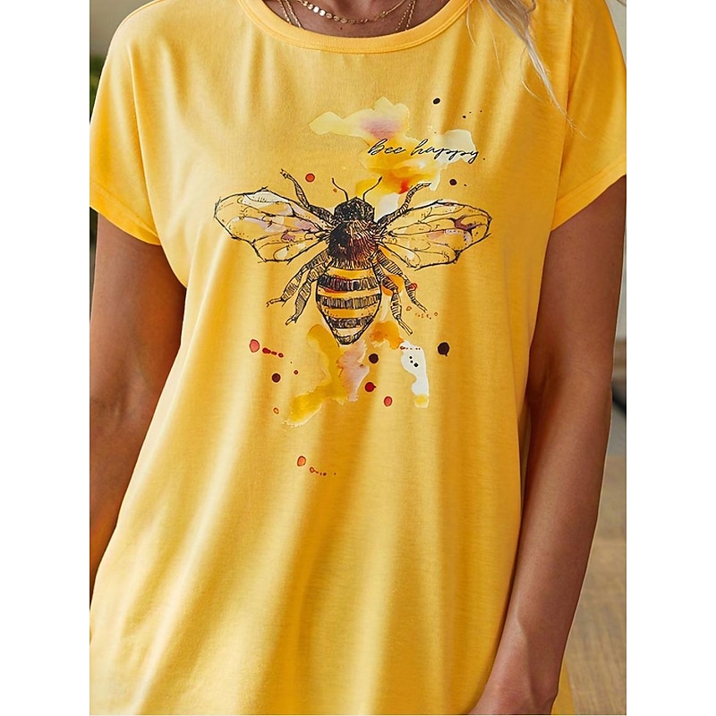 Women's T Shirt Bees Stylish Casual Short Sleeve Crew Neck Regular Tops Daily Print Yellow Pink Blue Green Summer 7