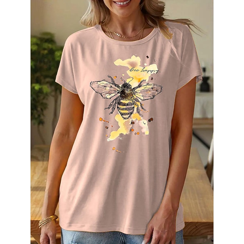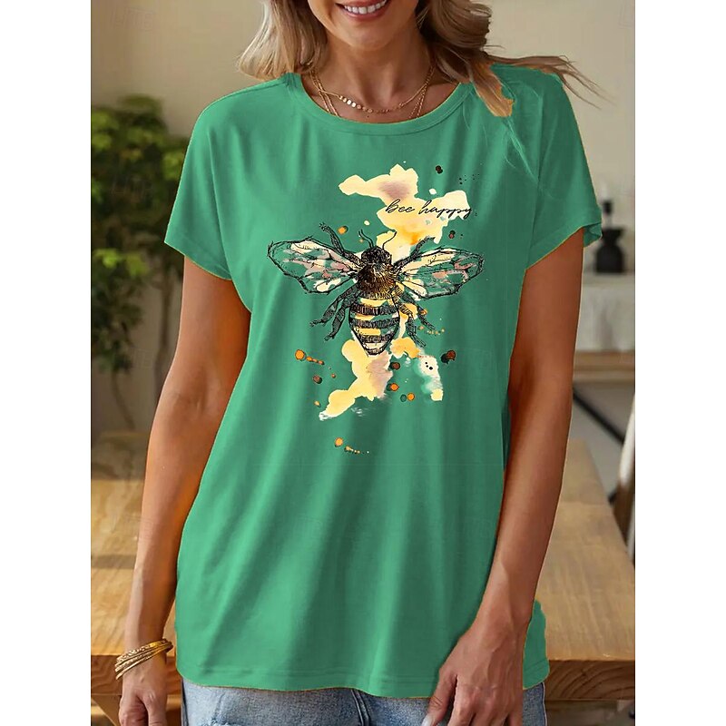Women's T Shirt Bees Stylish Casual Short Sleeve Crew Neck Regular Tops Daily Print Yellow Pink Blue Green Summer 12