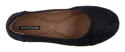 • These comfy ballet flats combine comfort and style effortlessly, boasting a sleek and adaptable close toe laser cut design that pairs well with any attire. With a 1" flat heel, they offer a subtle lift without compromising on stability or ease of wear