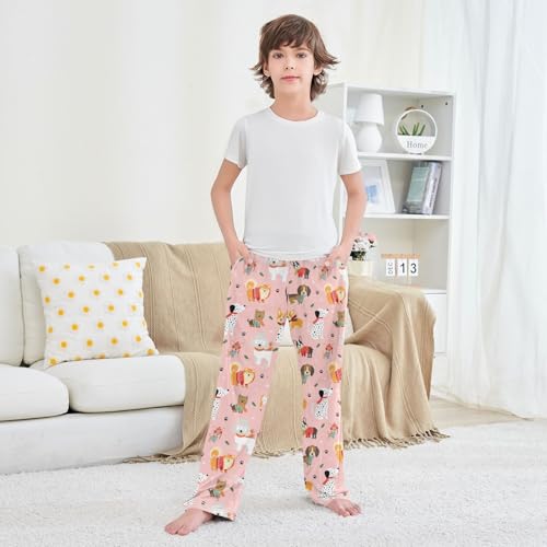 HOT ! ZZXXB Xmas Poodle Dalmatian Dog Boys Long Pants Soft Trousers Elastic Waist Kids Lounge Bottoms with Pockets S-XL