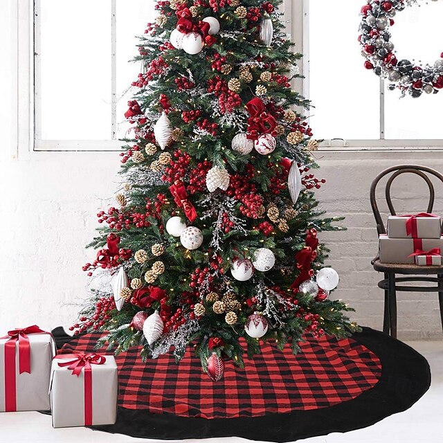 $25.99 - Christmas Tree Skirt Red and Black Plaid Velvet Fabric 120cm Festive Holiday Decoration Perfect Christmas Tree Base Cover Cozy Seasonal Home Ornament 2025. Shop for cheap Tree Skirt online? Buy at lightinthebox.com on sale today!