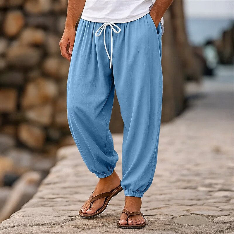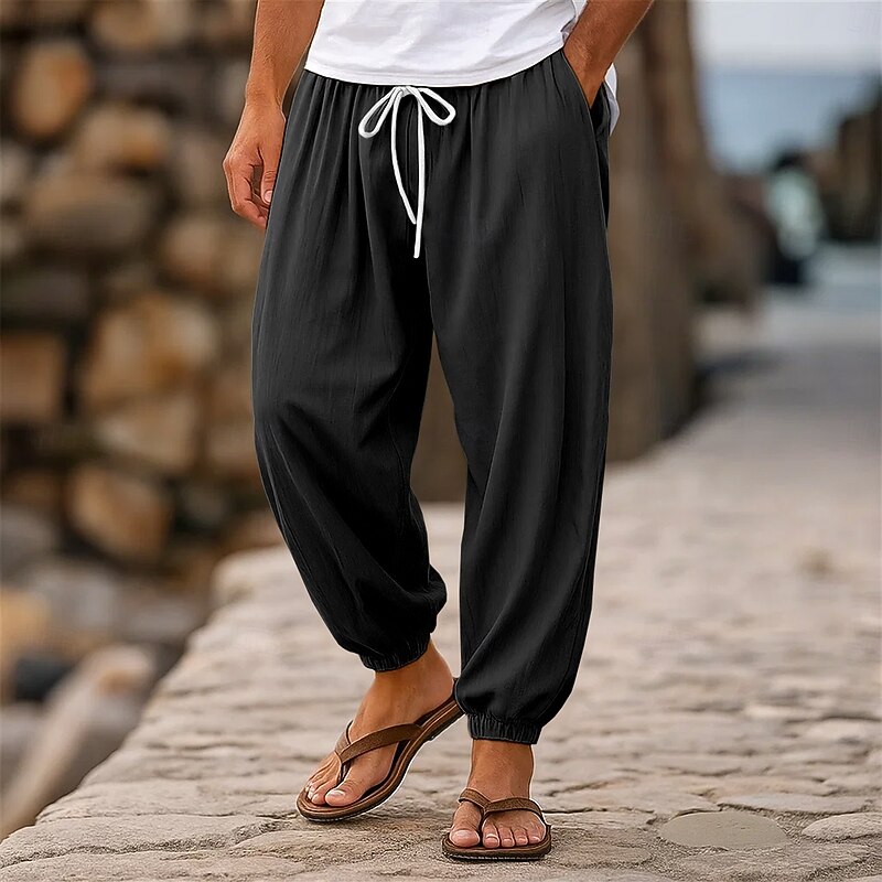 HOT ! Men's Linen Pants Trousers Summer Pants Jogger Pants Elastic Waist Straight Leg High Rise Solid Color Plain Comfort Breathable Full Length Wedding Holiday Vacation Fashion Black White High Waist