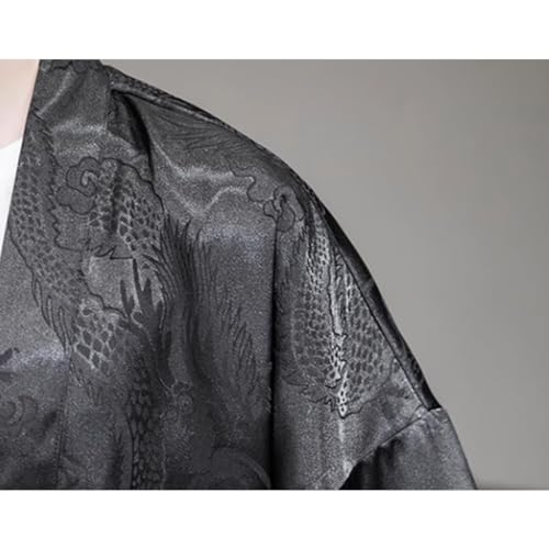 HZCX FASHION Mens Silk Satin Robe Summer Lightweight Dragon Kimono Shirt Cardigan Open Front 3/4 Sleeve Hanfu Chinese Jacket 3