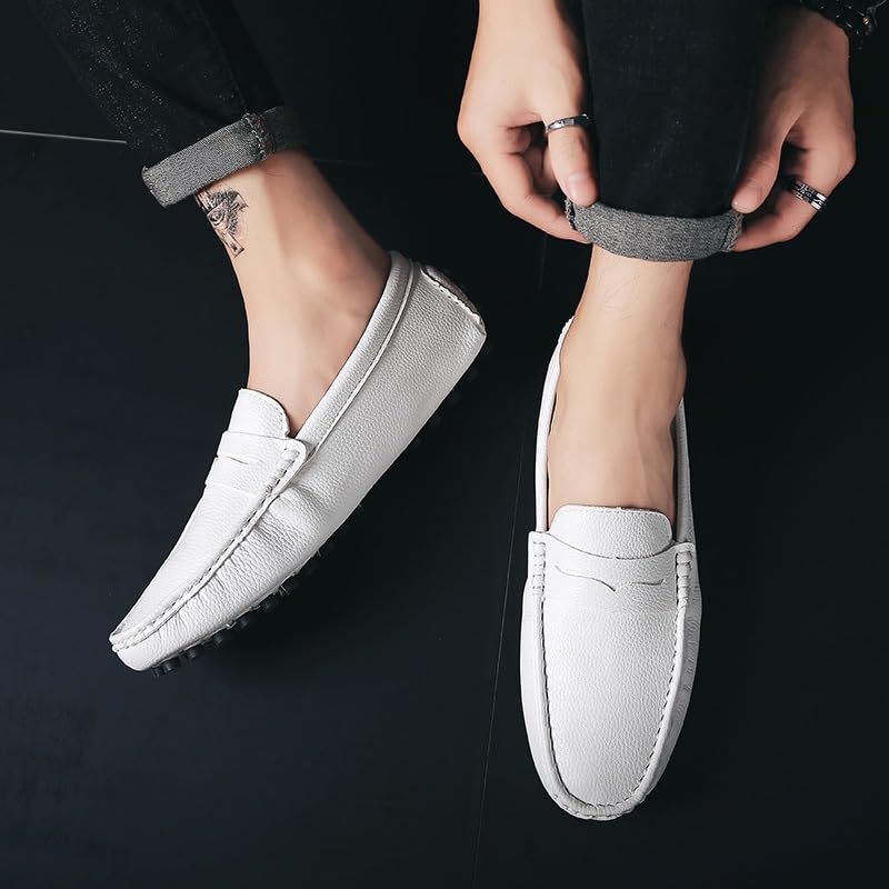 HOT ! Loafers for Men Square Toe Nubuck Leather Penny Driving Loafers Flexible Lightweight Flat Heel Walking Slip On