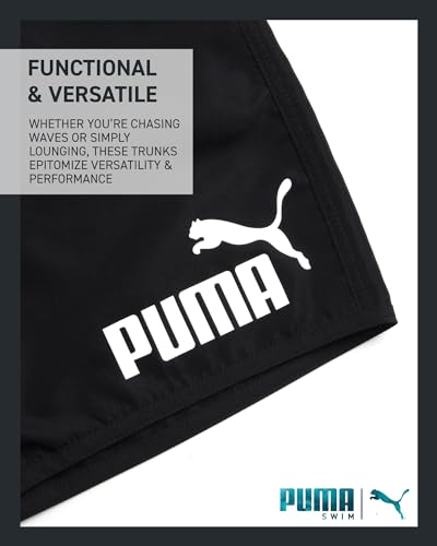 • Quick Dry Performance: Dive into aquatic escapades with unwavering confidence in these meticulously crafted PUMA Men's Bathing Suit Trunks; Engineered with state-of-the-art quick-dry technology, these trunks ensure rapid moisture evaporation, guaranteeing you remain comfortably dry both in and out of the water; Bid farewell to the discomfort of soggy swimwear and revel in the freedom to enjoy every moment of your aquatic adventures without hesitation