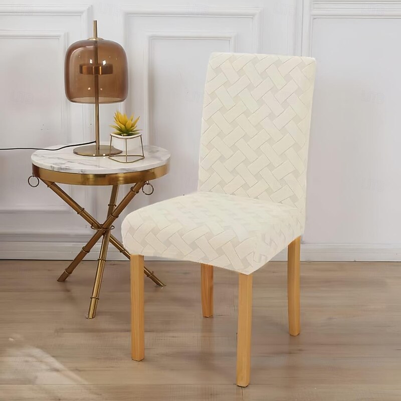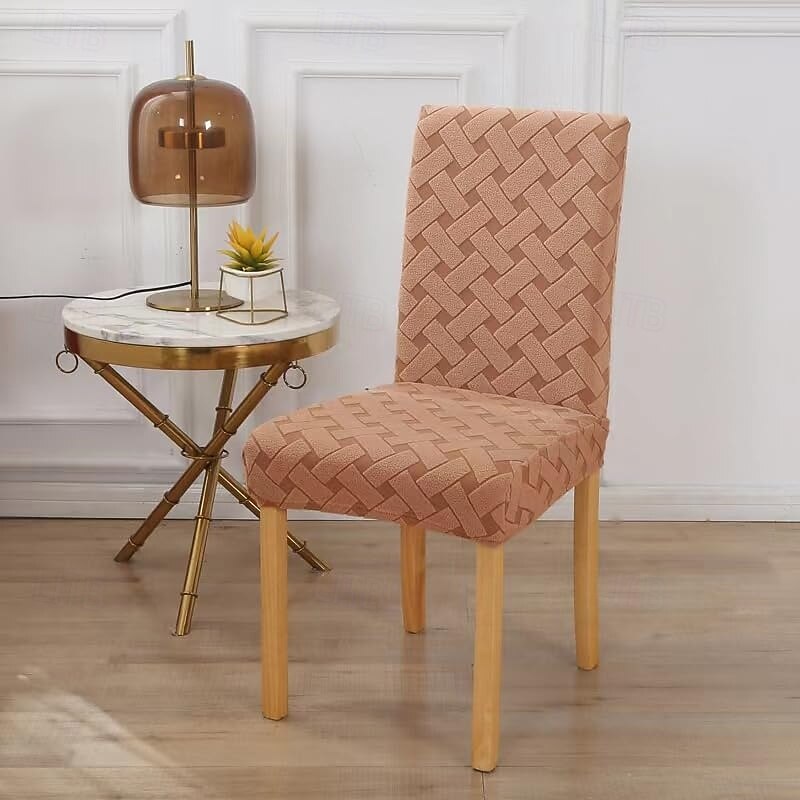 Highlights Features: Fabric: Exquisite jacquard fabric, high elasticity, soft, breathable, wear-resistant, suitable for all seasons Pattern: three-dimensional stripes, more beautiful Printing and dyeing: reactive printing and dyeing, no formaldehyde fluorescent agent, healthy and environmentally friendly Cleaning: hand washable, machine washable Material: 90% polyester 10% spandex Package Included: 1PC Chair Cover