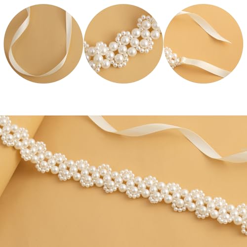 Pearl Wedding Belt Bridal Sash Handmade Beaded Pearl Sash Belt,for Wedding Dress Bridesmaid Flower Gril 4