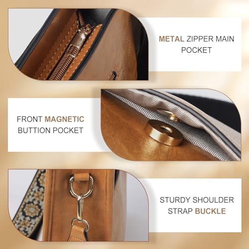 HOT ! Crossbody Bags for Women Elegant Vegan Leather Hobo Handbags with 2pcs Adjustable Guitar Strap(dark brown)