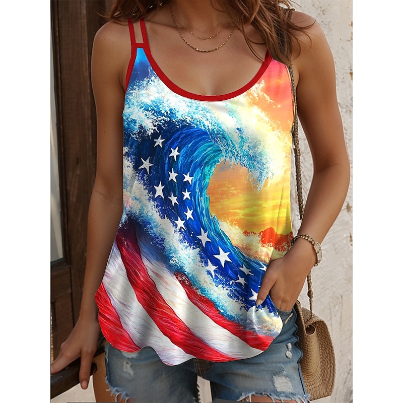 HOT ! Women's Patriotic Camisole Tank Top Graphic Flag Casual Sleeveless Scoop Neck Regular Tops Daily Holiday Print Yellow Wine Red Blue Summer Spring