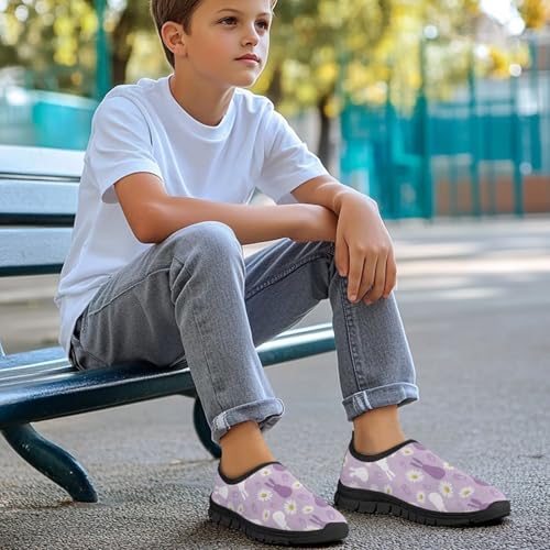 Kids Slip On Walking Shoes for Boys Girls Breathable Mesh Casual Shoes Loafers Non Slip Lightweight Comfort Sneakers Spring School Day Black Sole Size 11-15