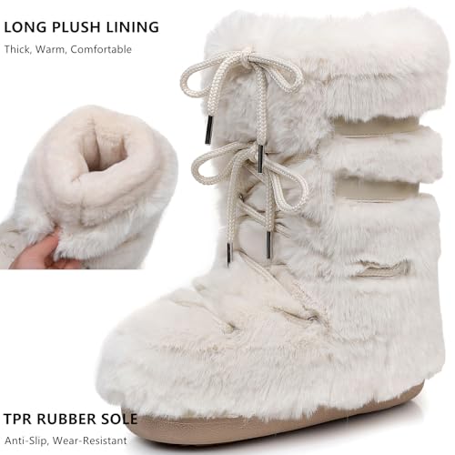 Fur Boots for Women, Furry Faux Fur Fuzzy Fluffy Women Snow Boots with Fur Lined Black White Pink Mid-Calf Winter Boots 4