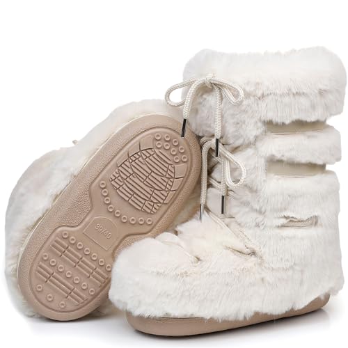 • Fur Lined Furry Boots:These women boots with long plush faux fur lining,provide extra insulation against the cold. Whether you're enjoying outdoor strolls or shopping, these winter boots will keep you warm throughout the day. Idea for women who need fur boots, or fuzzy boots.