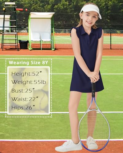 Soneven Girls Sleeveless Tennis Dress Kids Ruffle Golf Dress School Sports Athletic Dresses Outfit with Shorts Pockets 5