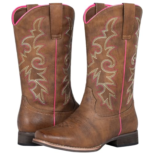 • pleasant Fit: With a velvety, brown Faux Leather upper and a cushioned insole, these square toe cowgirl boots are comfortable for daily wear