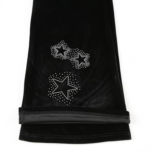 HOT ! Velvet Rhinestone Star Flare Pants for Women Low Waist Y2K Streetwear Bell Bottoms