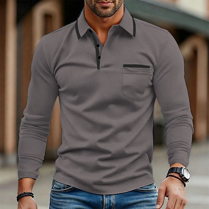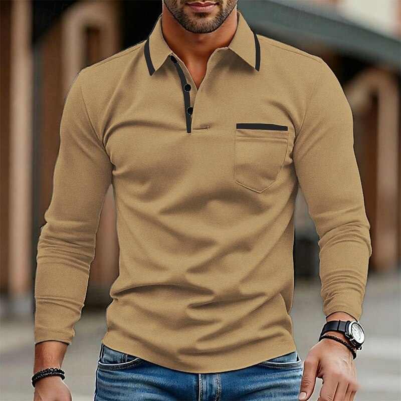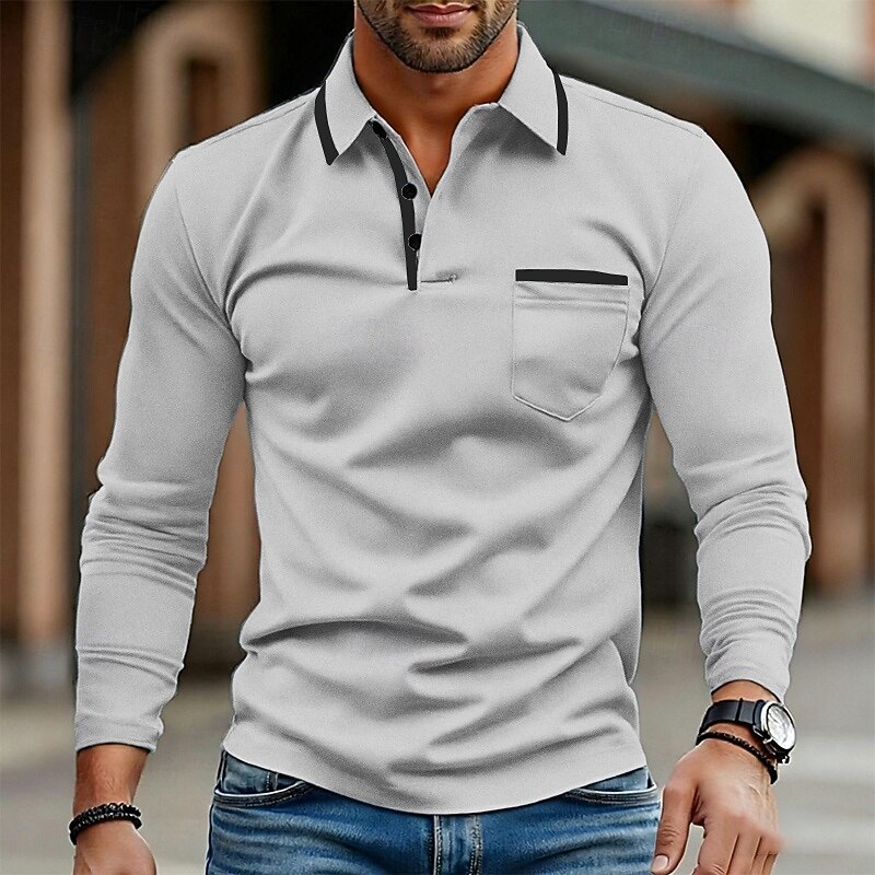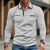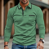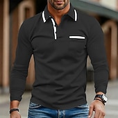 More information about Men's Golf Shirt Golf Polos Shirts Work Casual Lapel Long Sleeve Basic Modern Color Block Pocket Buttons Spring Fall Regular Fit Black White Navy Blue Sky Blue Green Khaki Golf Shirt