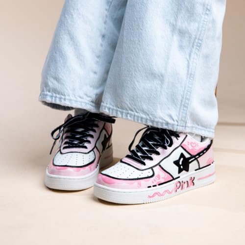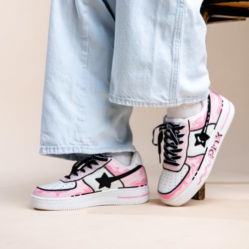 • THE CUTEST SHOES FOR WOMEN: Reach new heights in our Hand Painted Pink Star Casual Sneakers! Featuring a 1.5- inch platform sole to take your wardrobe to the next level!