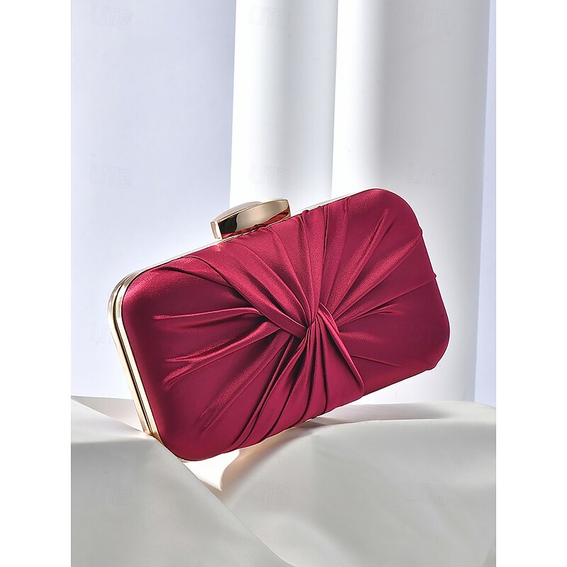 HOT ! Elegant Satin Evening Clutch for Women – Glamorous Knot Design with Gold Frame, Perfect for Weddings, Parties, and Formal Events