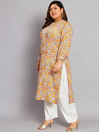 Tissu Women's Plus Size Yellow & Pink Printed Kurta with Palazzo 7