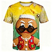 More information about Christmas Men's Gingerbread T Shirt Short Sleeve T shirt 3D Print Crew Neck Shirt Daily Designer Artistic Vacation Party Street Yellow Blue Orange All Seasons Clothing Apparel S M L XL XXL XXXL