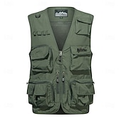 Men's Letter Printed Vest Waistcoat Gilet Tactical Practical Removable Casual Sports Outdoor Fishing Photography Side Pockets Quick Dry Mesh Fall Winter Collarless Sleeveless khaki Army Green Dark 11