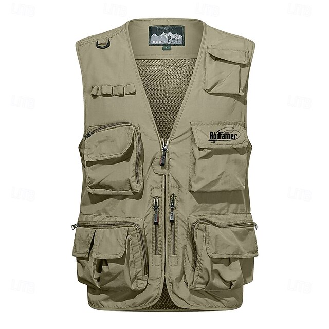 More information about Men's Letter Printed Vest Waistcoat Gilet Tactical Practical Removable Casual Sports Outdoor Fishing Photography Side Pockets Quick Dry Mesh Fall Winter Collarless Sleeveless khaki Army Green Dark