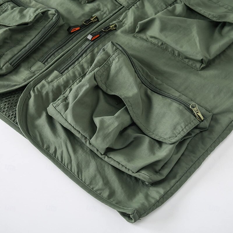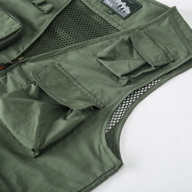 Men's Letter Printed Vest Waistcoat Gilet Tactical Practical Removable Casual Sports Outdoor Fishing Photography Side Pockets Quick Dry Mesh Fall Winter Collarless Sleeveless khaki Army Green Dark 8
