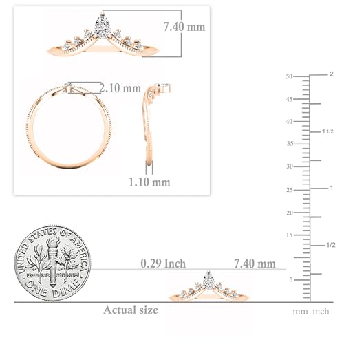 Dazzlingrock Collection 0.15 Cttw Pear & Round White Diamond Womens Beaded Crown Teardrop Engagement Ring, 14K Solid Gold