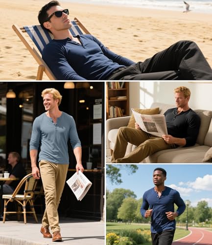 • [Durable Fabric]Crafted for lasting wear and timeless appeal, these long sleeve henley shirts combine rugged durability with modern style. The reinforced stitching can withstand daily wear while maintaining their shape, and the classic henley neckline brings a touch of sophistication.