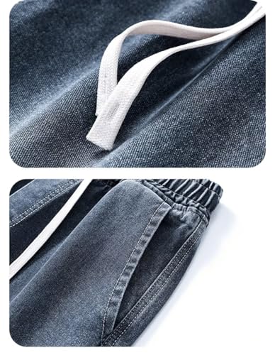 Mens Relaxed Straight Jean Elastic Waist Wide Leg Denim Pants Casual Loose Fit Long Trousers Streetwear MZA19 4