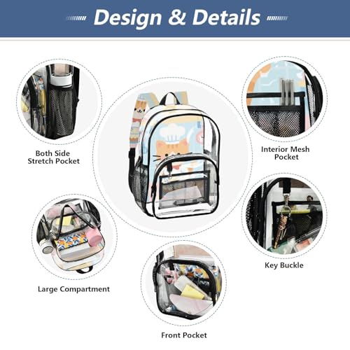 More information about Cartoon Cute Cats Chef Blue Kid Clear Backpack Clear Book Bag For Adults See Through Transparent Heavy Duty Backpacks
